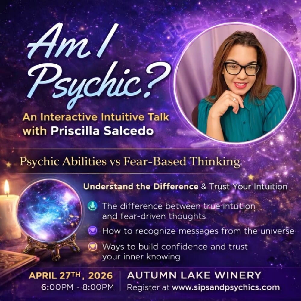 Join renowned psychic Priscilla Salcedo for an engaging, interactive experience where she breaks down the difference between true intuitive messages and fear-driven thoughts. Through real-life examples, guided discussion, and audience interaction, Priscilla will help you better understand how intuition communicates—and how to trust it.