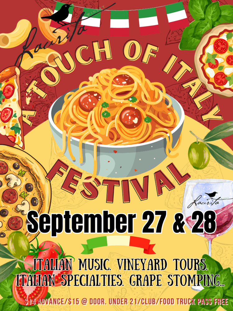 Under-21 FREE. Come join us for a fun-filled day with an Italian theme on the grounds of Laurita Winery – a great place to enjoy outstanding wines with friends and family! Pair our delicious wines with the many food offerings available from onsite food trucks! Wine and dine while listening to Italian music, plus local vendors. $14 per adult includes parking and shuttles, entertainment, face-painting, Laurita souvenir wine glass, vineyard wagon tour, playgrounds, cornhole, $10 special add-on price for u-pick flower bouquet or pumpkin.